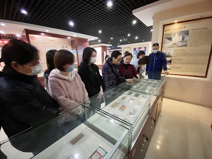 苗绘带领全馆教师在金融博物馆参观了抗日战争时期、解放战争时期的红色文物,包括在革命根据地发行的大量红色钱币、红色债券以及贸易公司流通券等。苗绘向大家讲述了红色文物背后的英雄人物和革命故事,如“为了保护党的文件、掩护战友而牺牲的冀南银行行长高捷成”“人民群众为支援根据地经济建设积极购买晋察冀边区行政委员会救国公债”“为抗击国民党经济封锁发行的冀中第五行政区流通券”等,让全体教师深入了解了中国共产党团结带领人民群众开展抗日斗争和解放战争的历史。